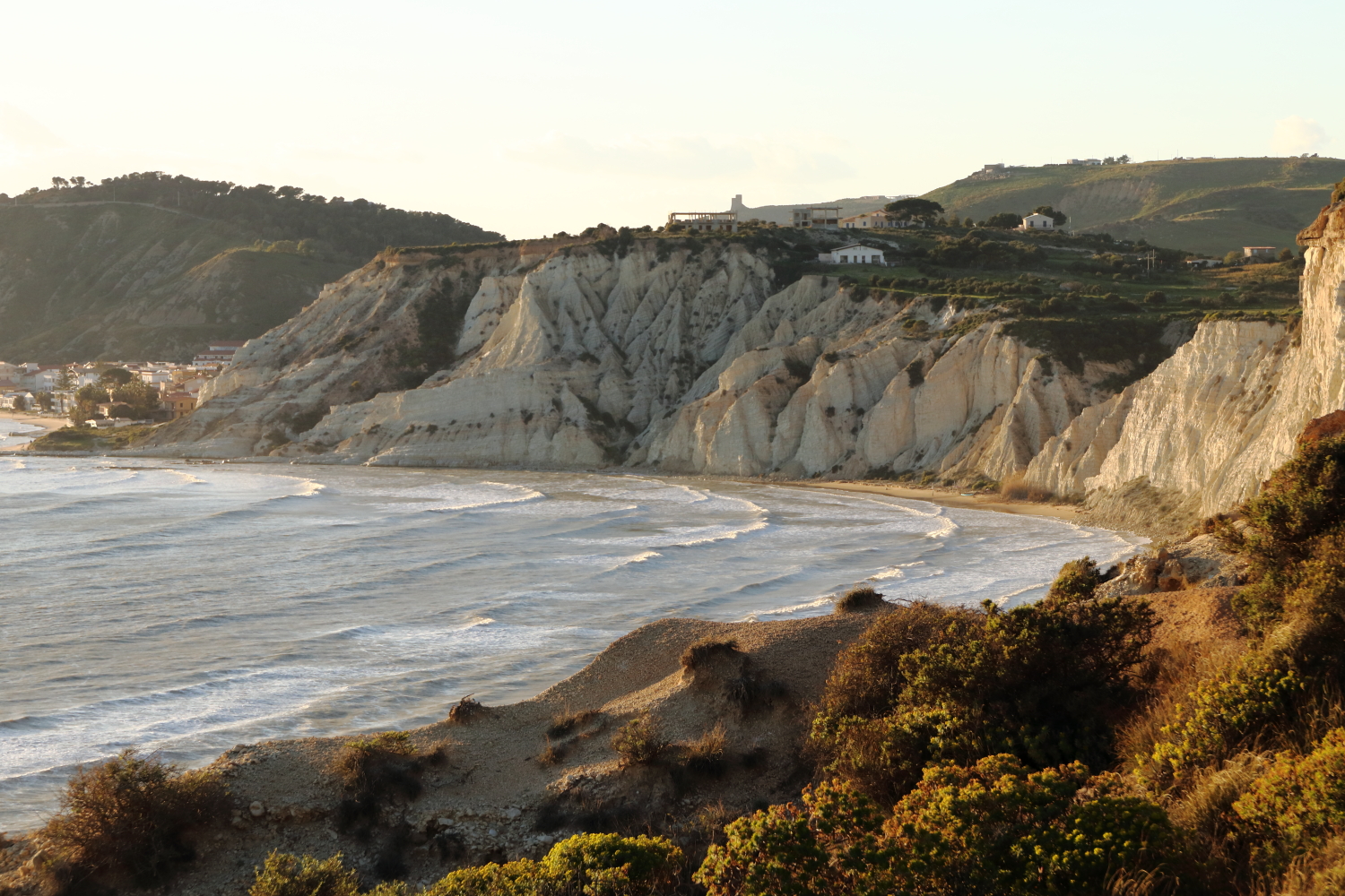 Encore un nouveau plateau cinématographique situé un peu avant Agrigente : la Scala dei Turchi délivre deux particularités exceptionnelles. Lissée par l’érosion du temps, sa roche blanchâtre composée de strates en fait une singularité minérale, et un balcon idéal pour se laisser éblouir par la lumière du moment…. Clap de fin.