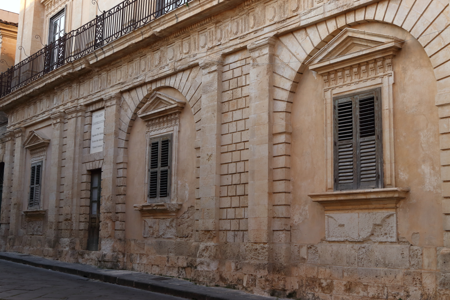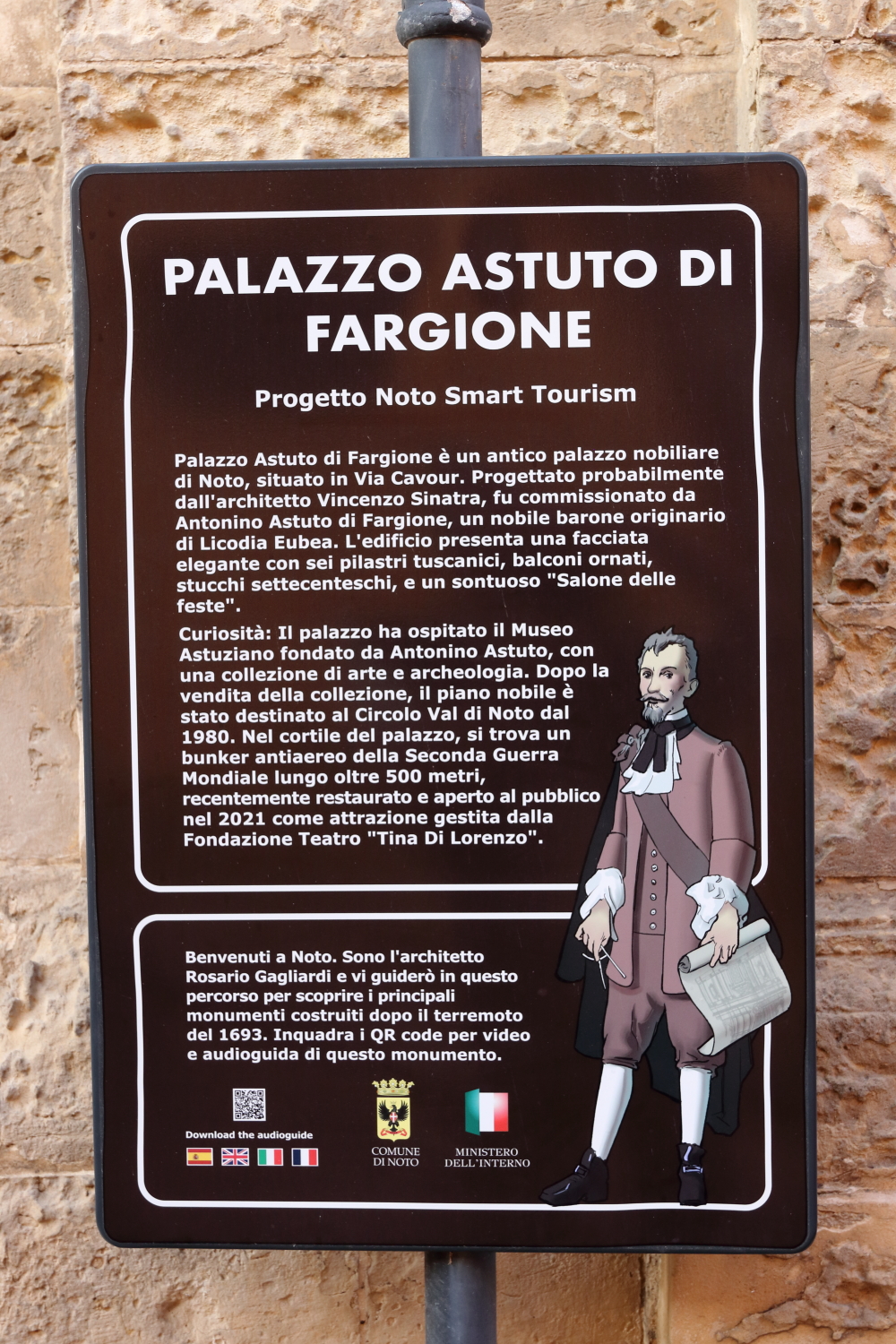 Le secteur d’Agliastrello est la partie pentue du centre historique. Dans la cour du palais Astuto di Fargione (photo Noto 16) se cache un bunker antiaérien de la Seconde Guerre mondiale de 500 mètres de long.