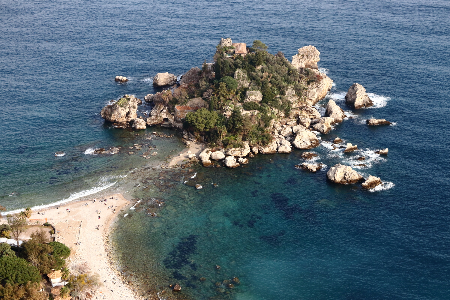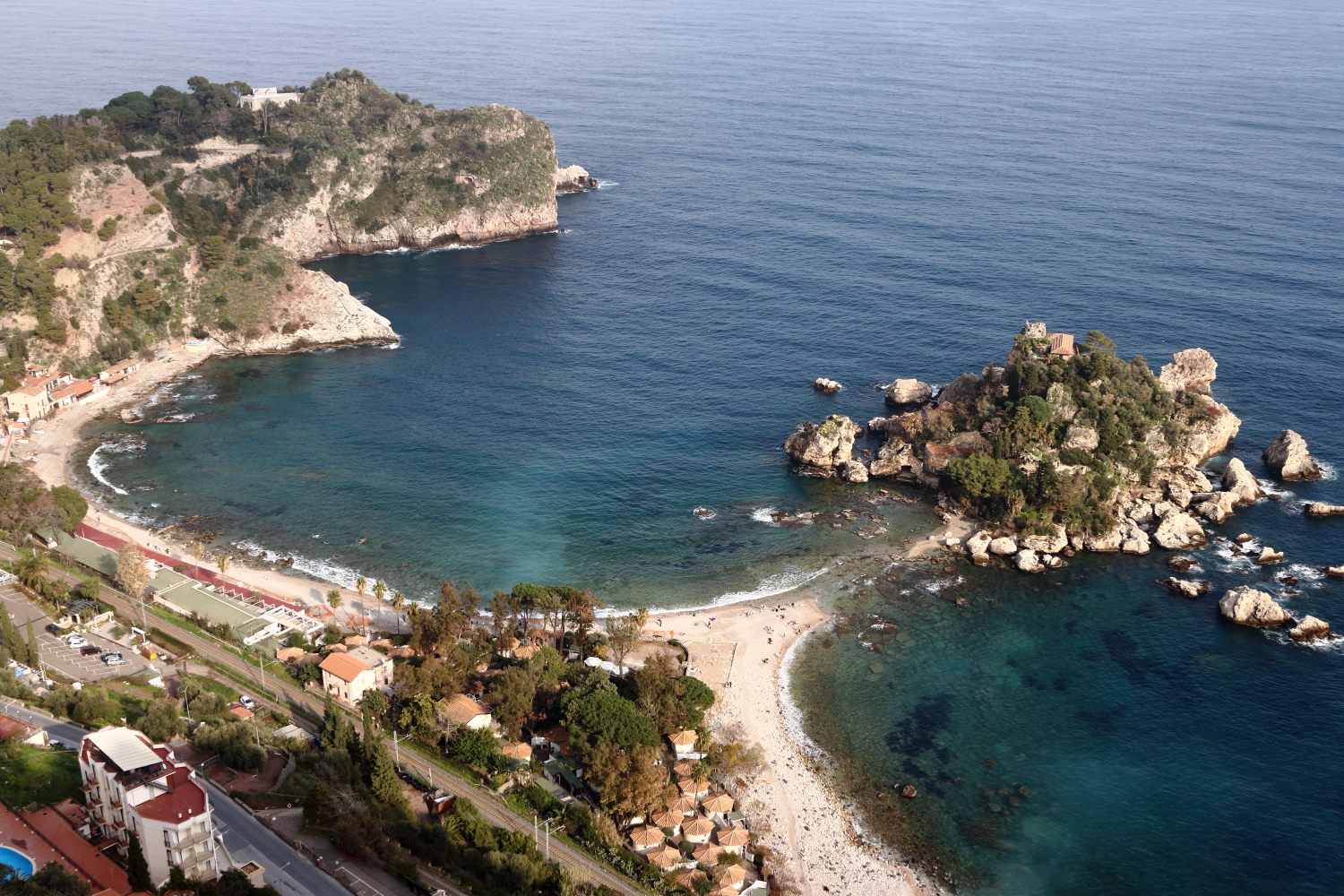 Nous entamons maintenant les derniers points d’intérêts sur la côte nord-est de la Sicile. Très haut perchée en bordure du littoral, Taormina, une ville au caractère médiéval. Au milieu de ses plages formant des criques, Isola Bella est un îlot en même temps qu’une réserve naturelle.