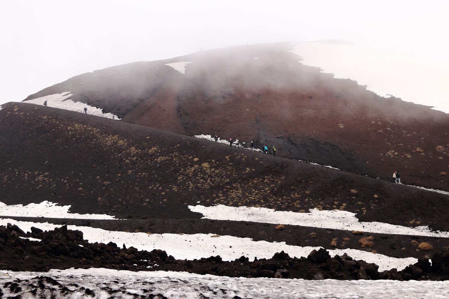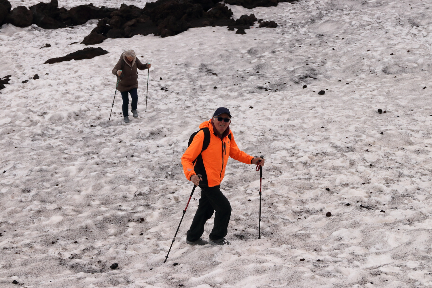 Il s’élève actuellement à 3403 mètres, le plus haut volcan actif d’Europe avec 80 éruptions au cours du 20ᵉ siècle. Il a encore grandi d’une douzaine de mètres en juillet 2024. La roche volcanique dans ces variantes de couleurs est vraiment surprenante. En montagne, les conditions météorologiques changent très rapidement et peut-être encore plus vite avec un volcan aussi imposant. Mais rien n’arrête notre Werner dans son acsension pour aller admirer le sommet et les différents cratères.