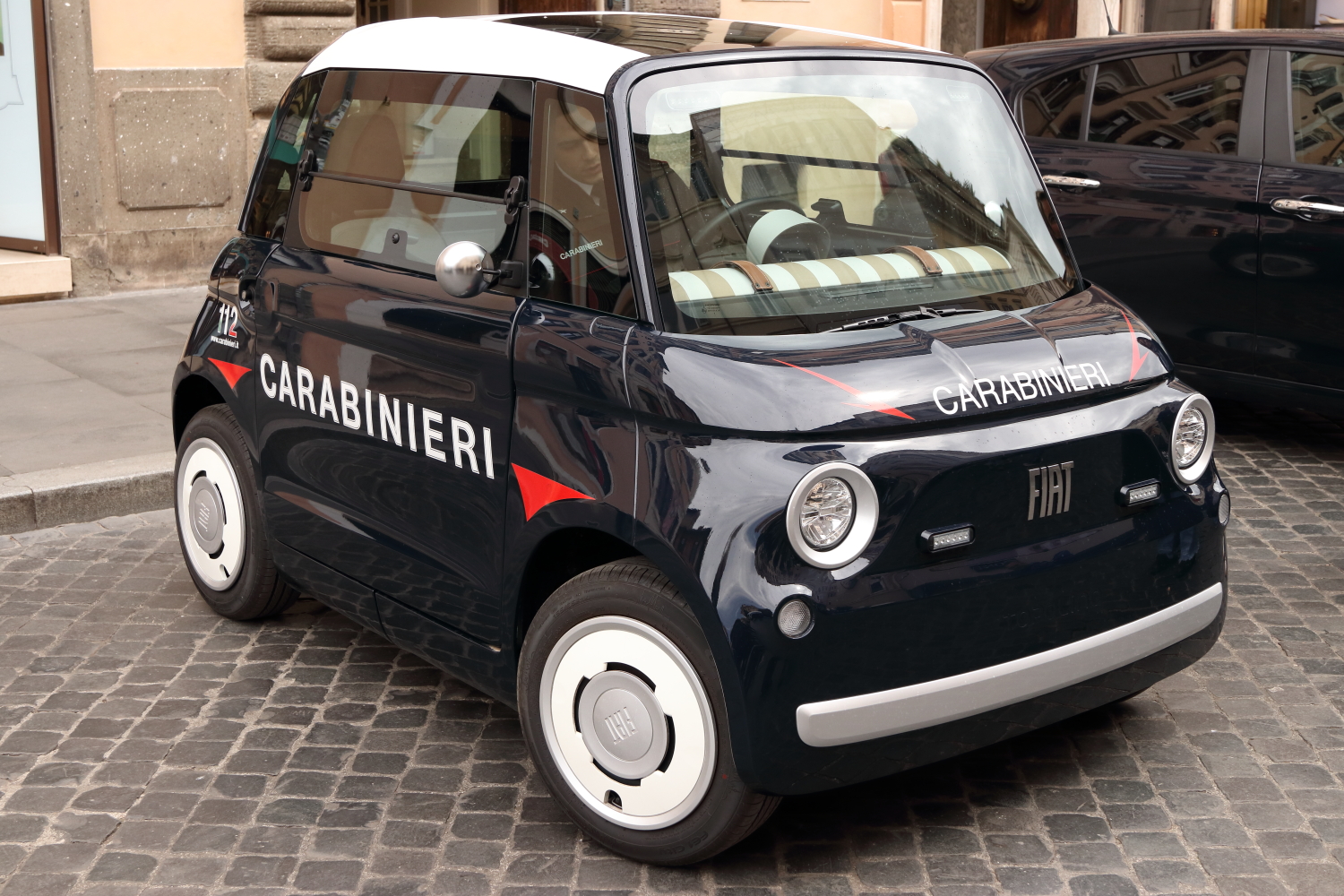 Bien qu’elle ne joue pas dans la même catégorie, la petite Fiat Topolino carabinieri a eu l’engouement du public pour les selfies. La Ferrari 12 Cilindri est le modèle 2026 de la mythique marque automobile. La police italienne roule aussi en Lamborghini et Maserati, de merveilleuses sportives.